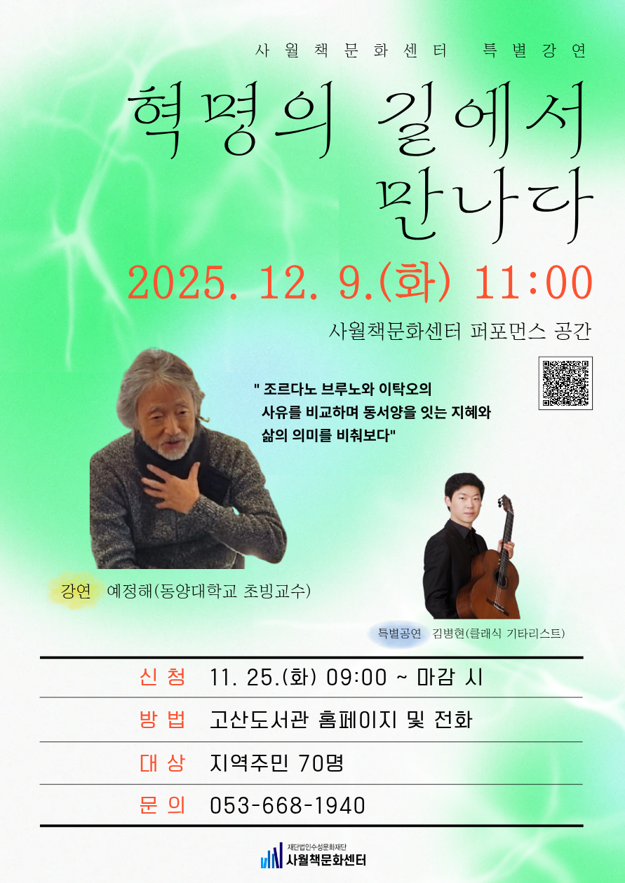 사월책문화센터 특별강연 「혁명의 길에서 만나다」