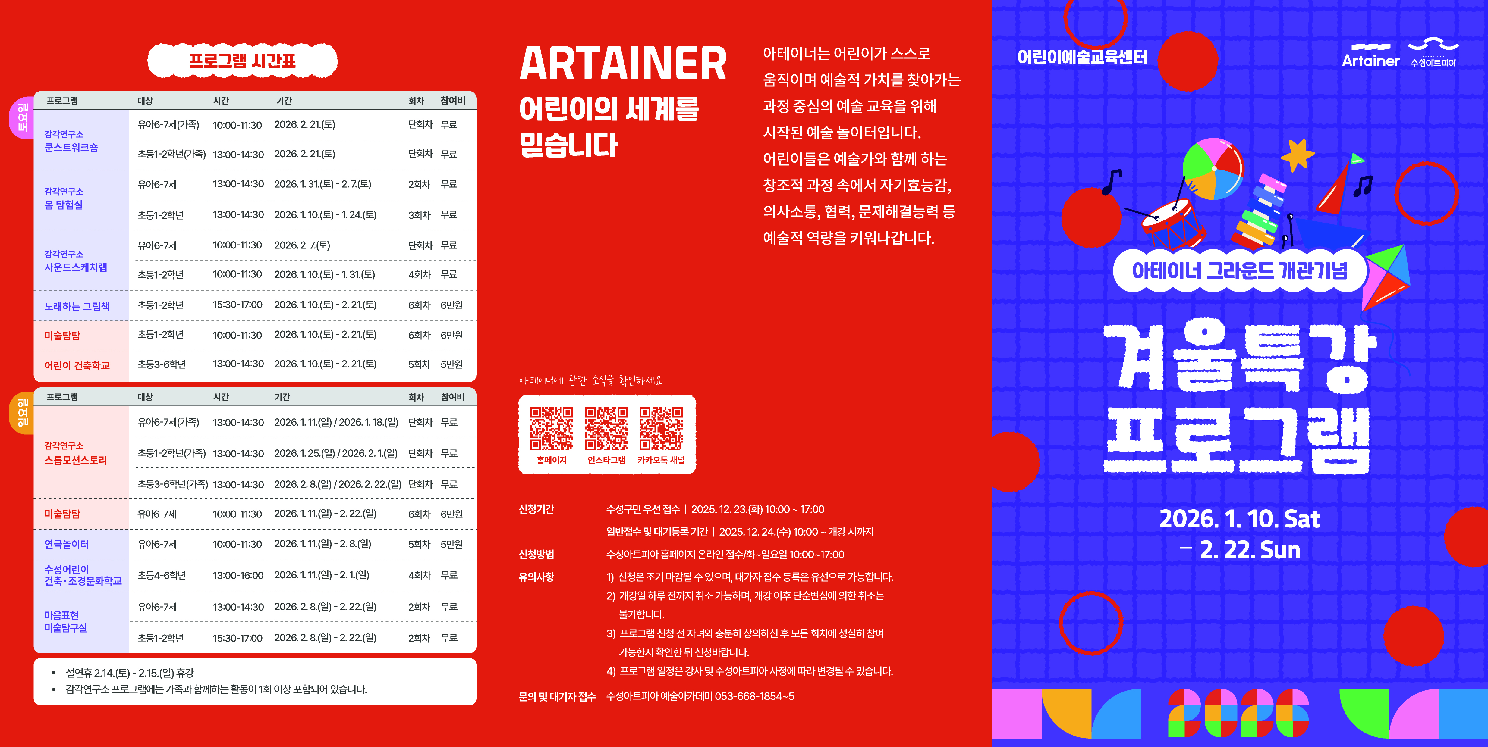 2026 아테이너 겨울특강(1-2월) 교육프로그램 어린이 참여자 모집